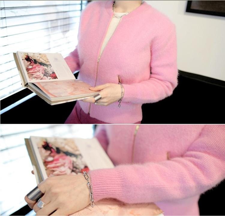 韩国女装秋冬爆款 pinkboll百搭纯色短款毛绒开衫(2色)