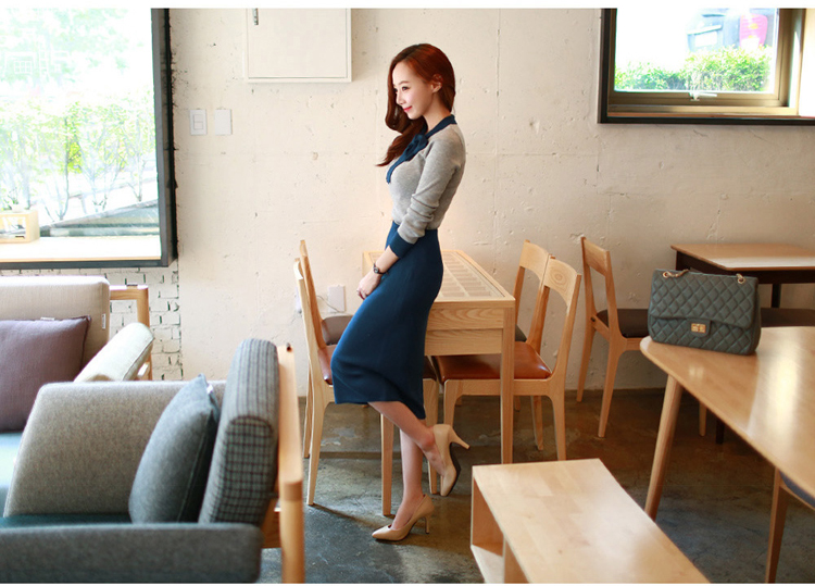 韩国女装品牌代理 英式学院风套装(蝴蝶结衬衫+连衣裙)
