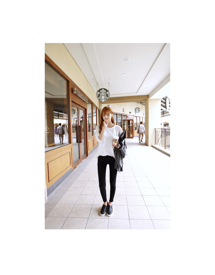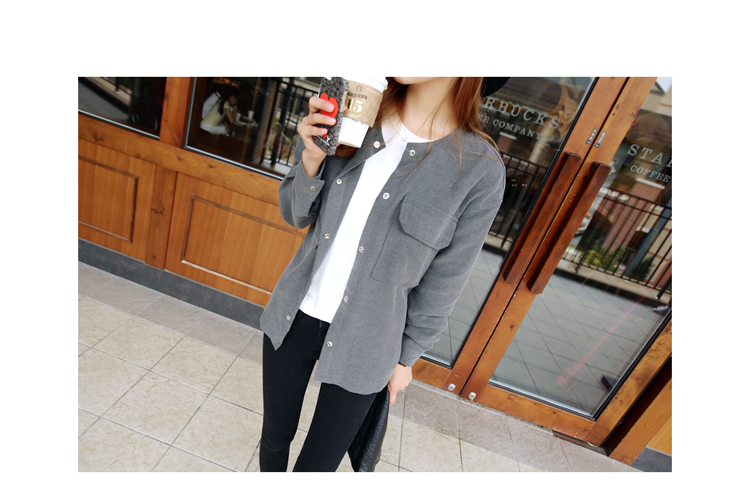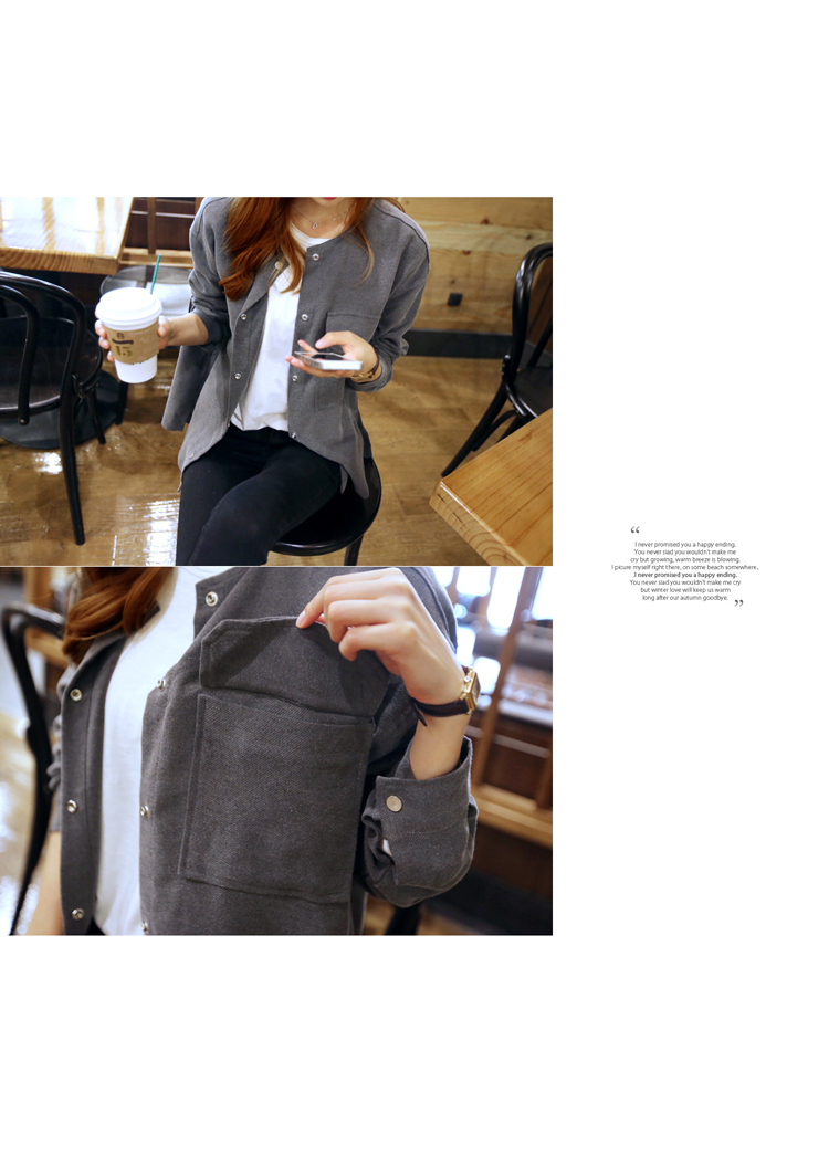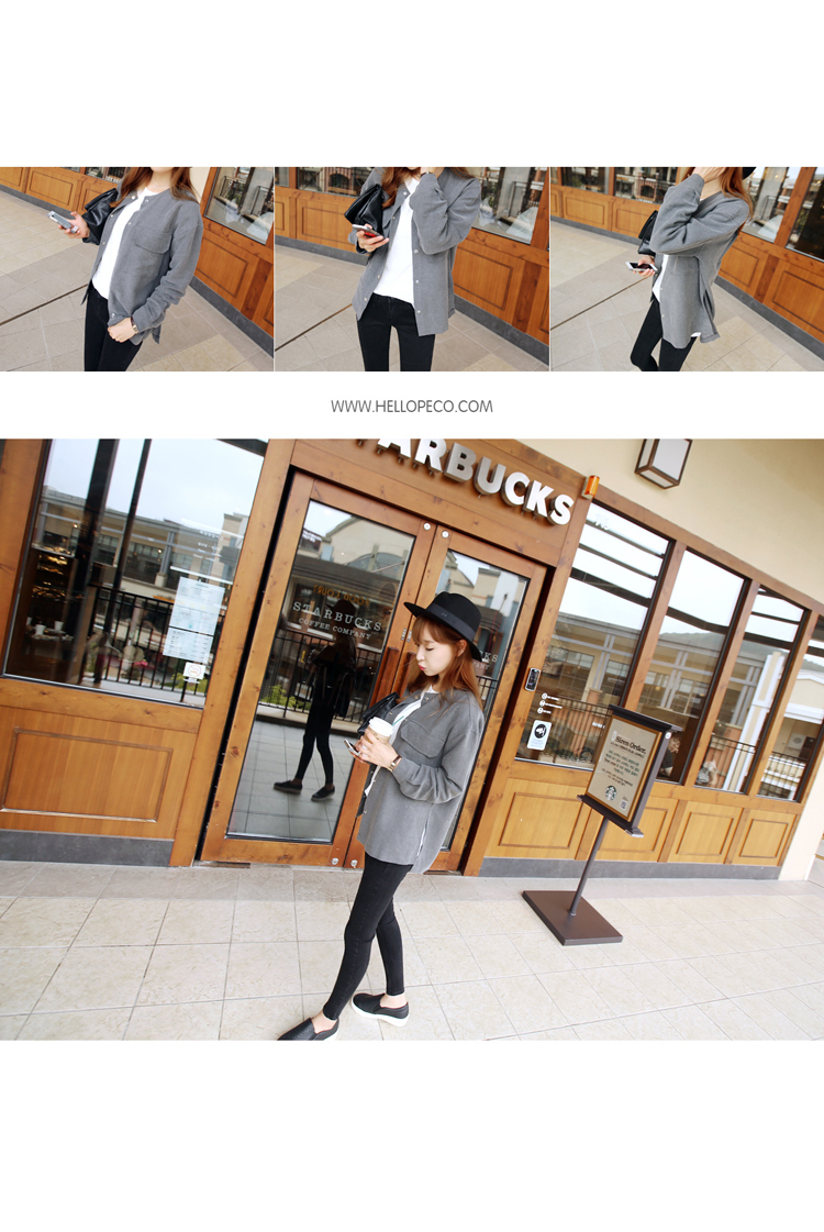 韩国女装批发 hellopeco极简风口袋装饰宽松衬衫(2色)