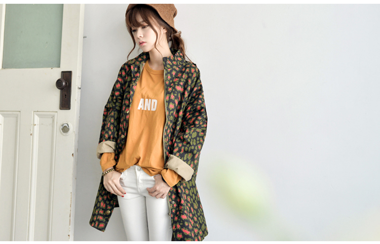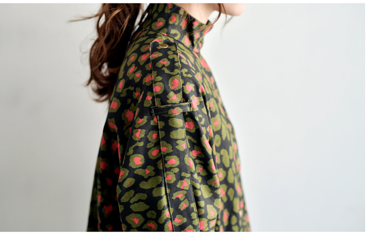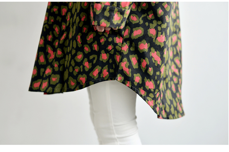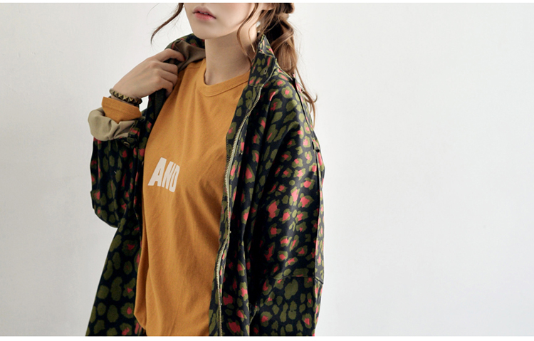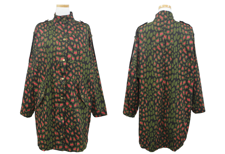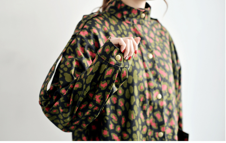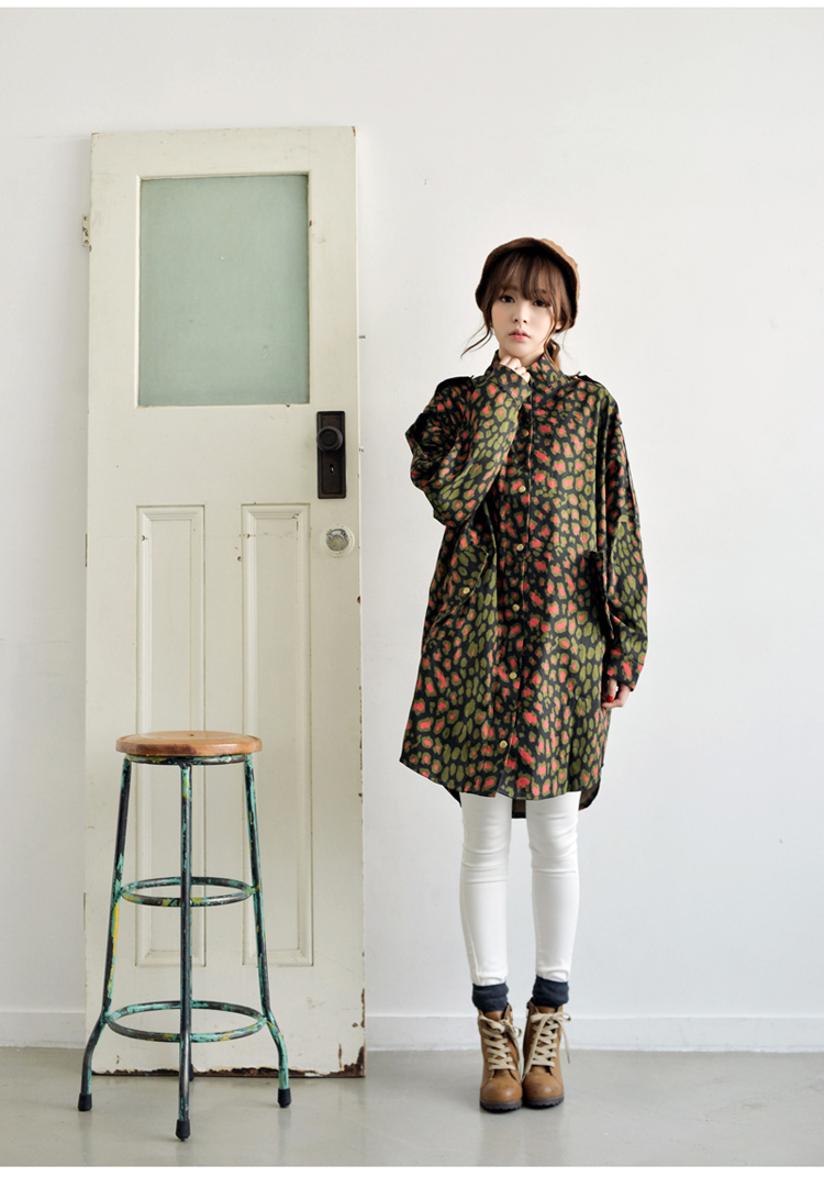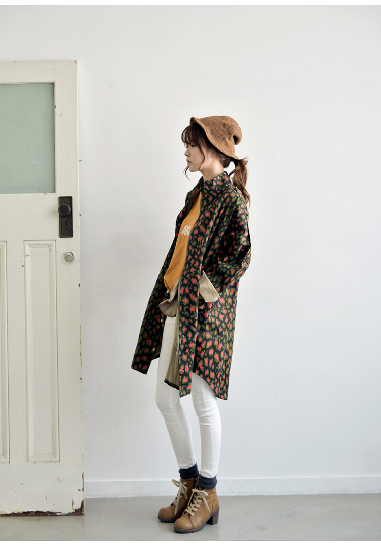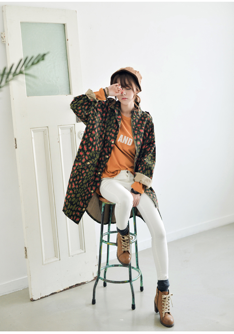 韩国女装网店代销 just-one街拍风撞色豹纹长款风衣