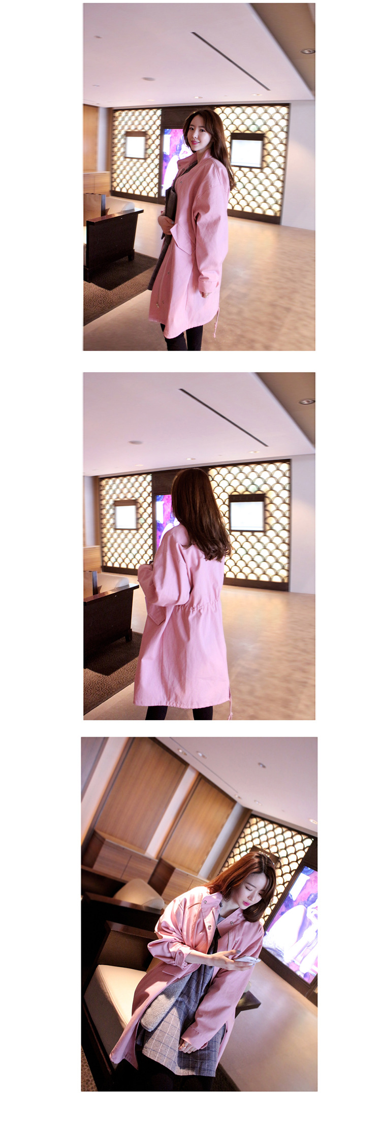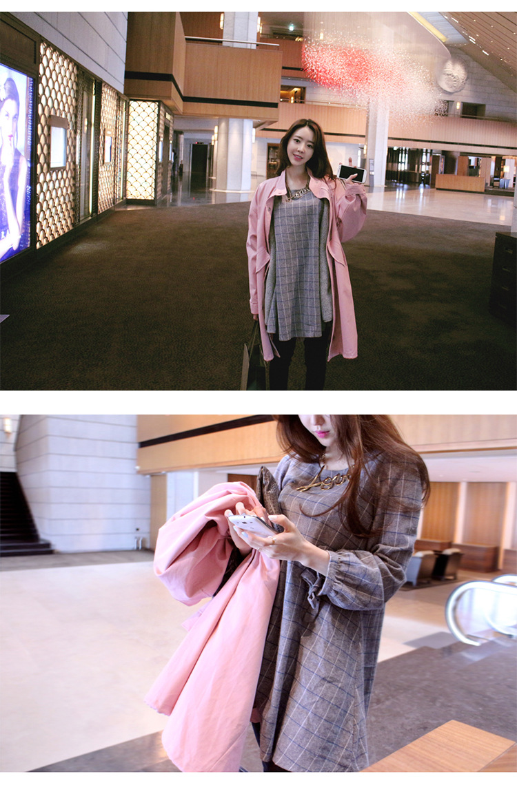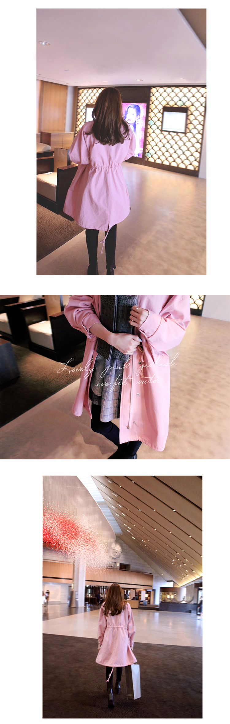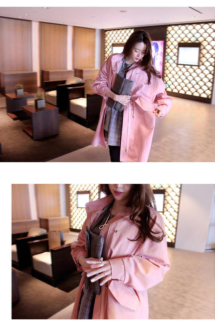 韩国女装网店代销 bubbleandchic宽松长款粉色风衣