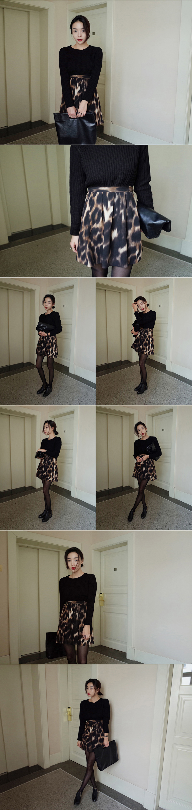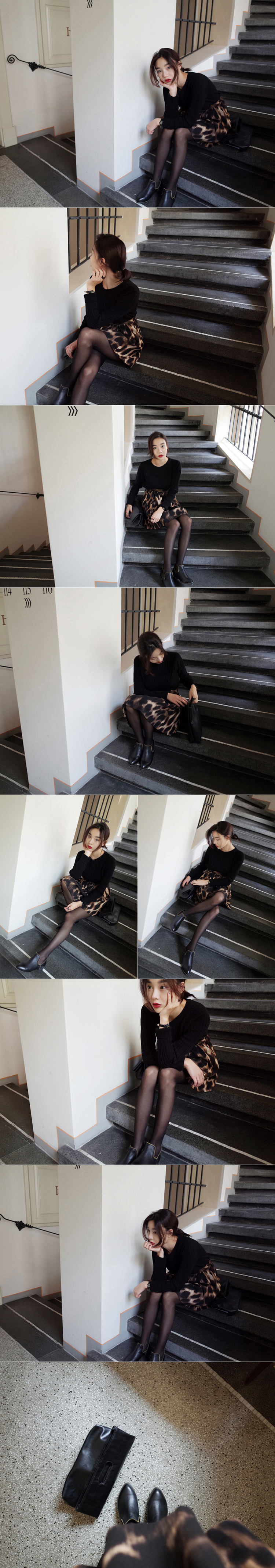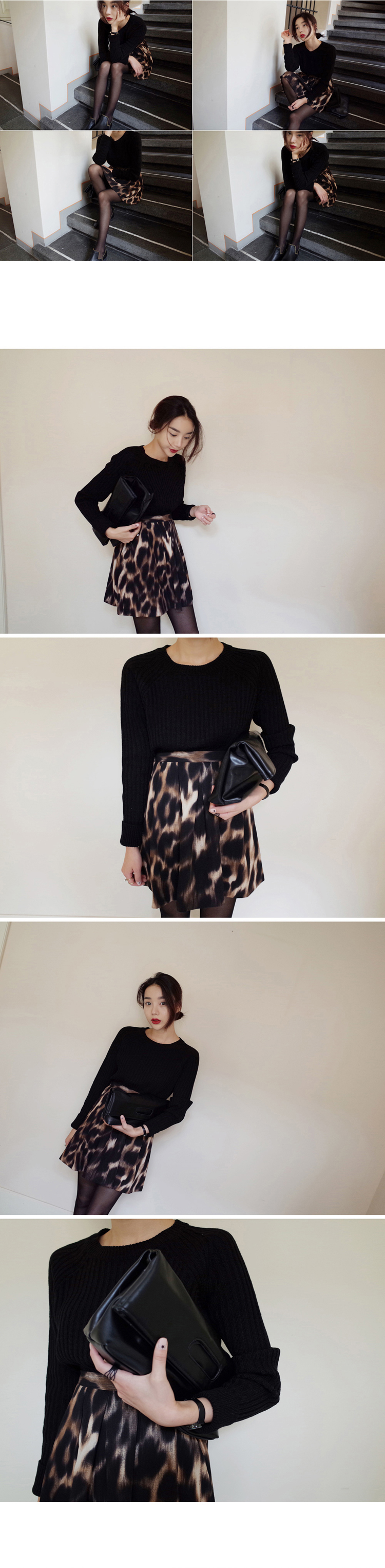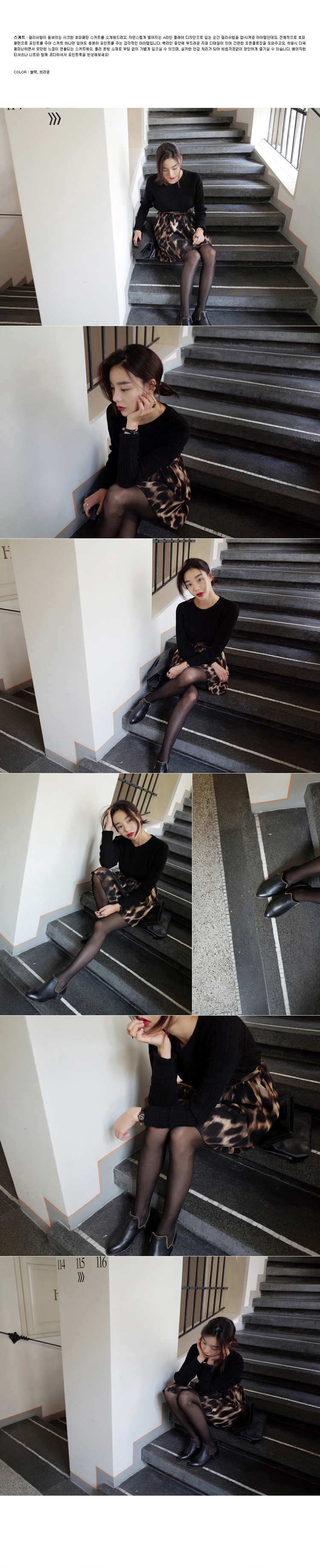 韩国代购批发 mocobling复古高腰豹纹半身短裙(2色)