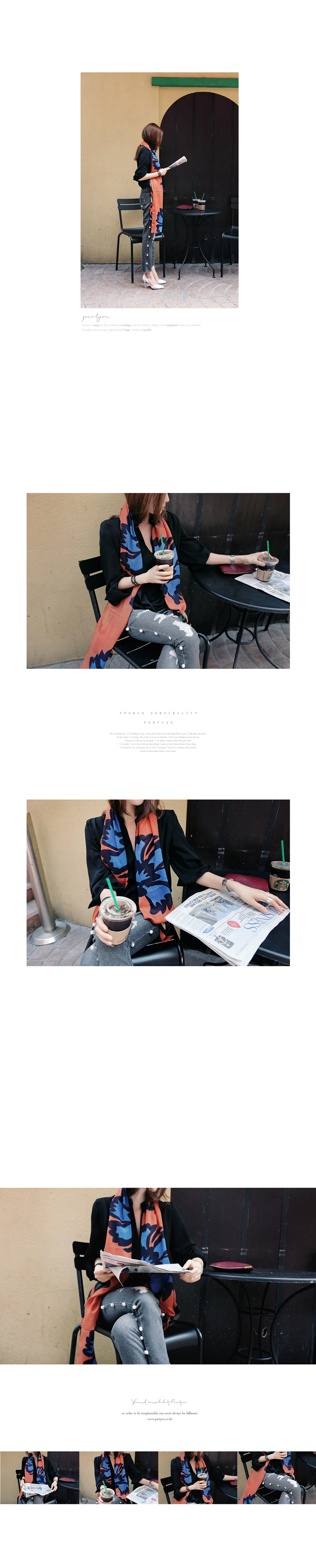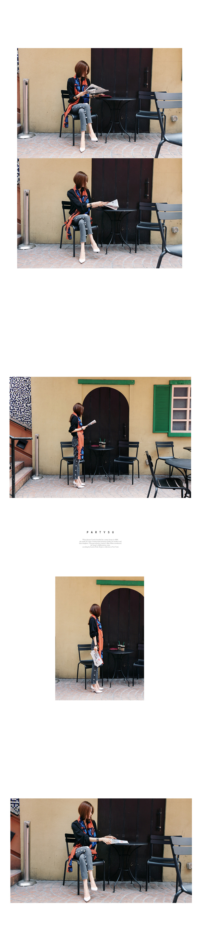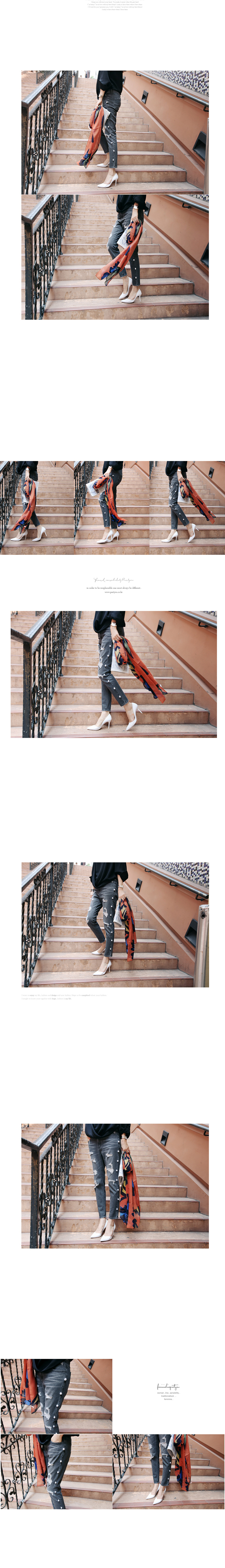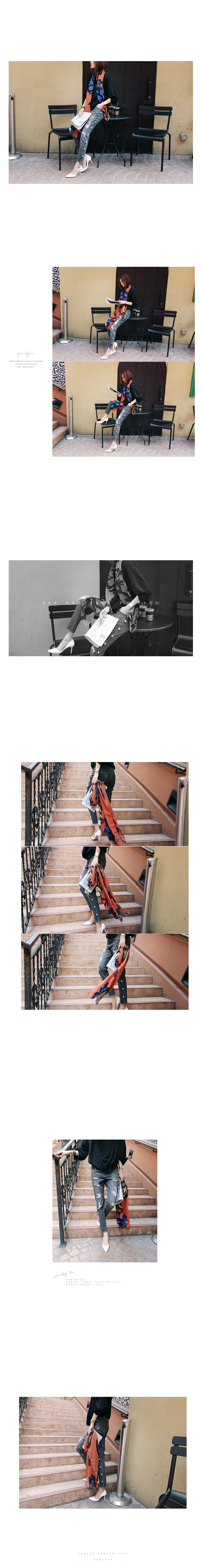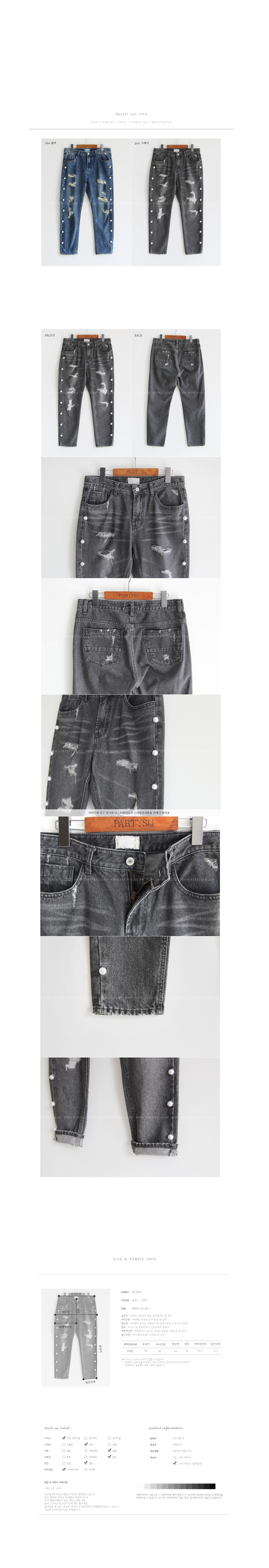 韩国服装代购 partysu珍珠装饰磨破牛仔长裤(2色)