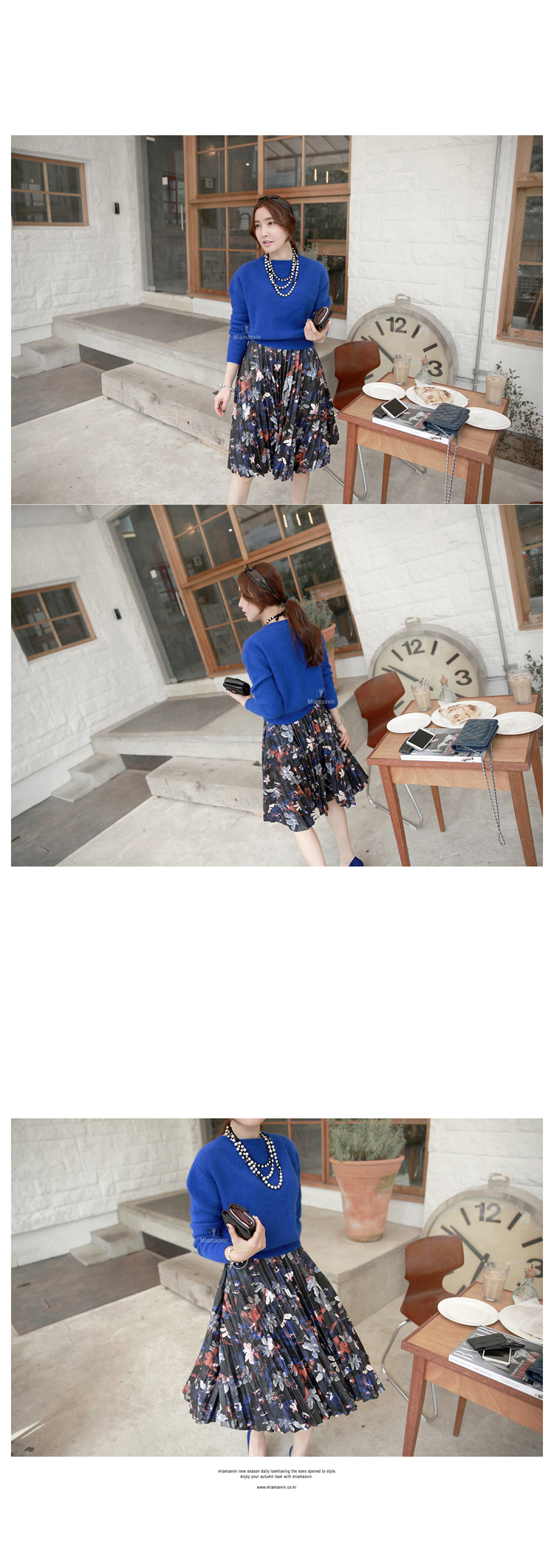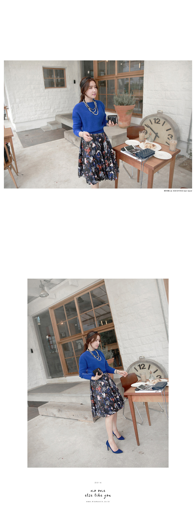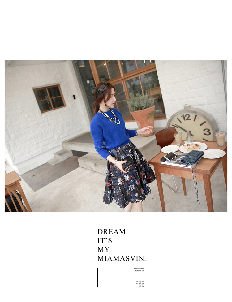 韩国服饰网 miamasvin复古高腰半身碎花皮裙(中裙)