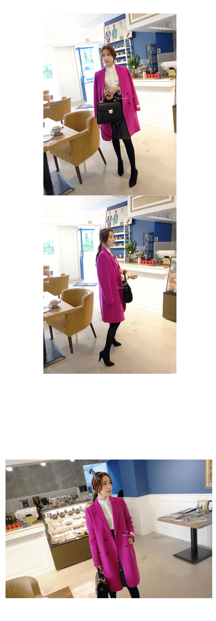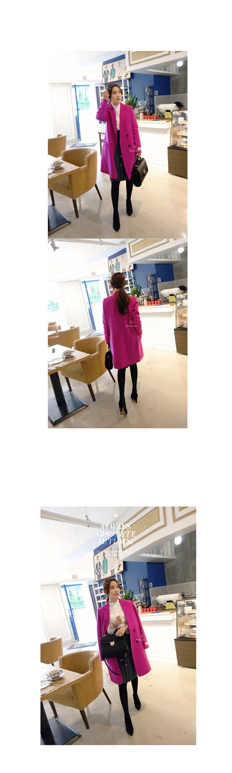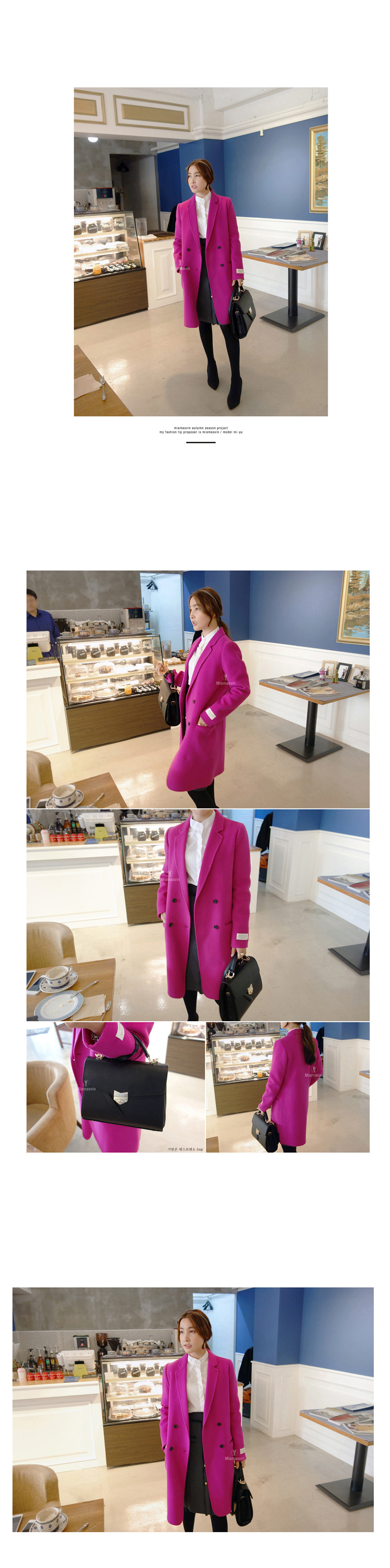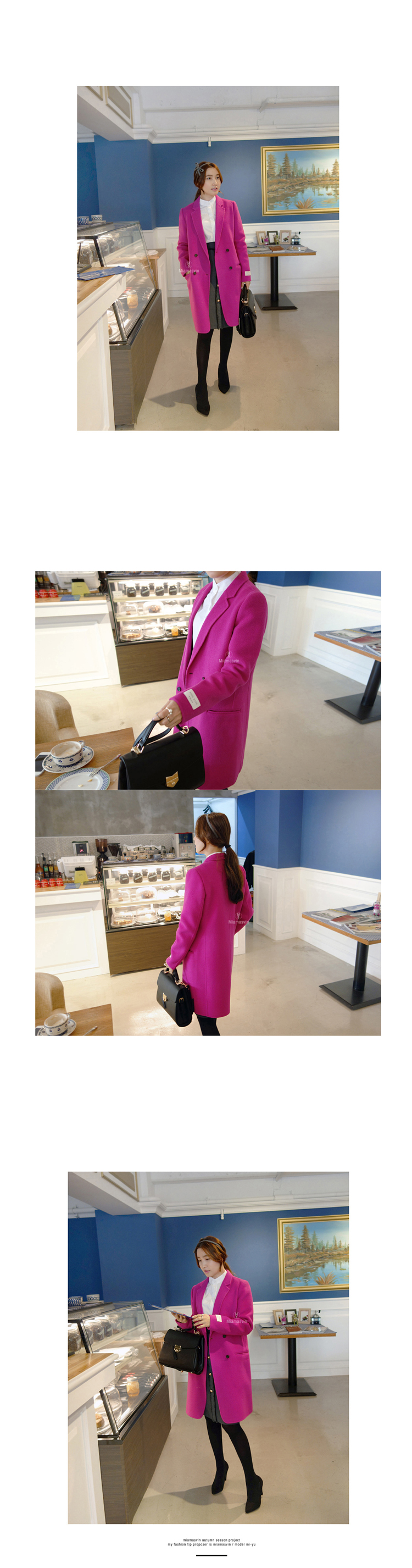 韩国女装代销 miamasvin气质纯色长款西装羊毛大衣(5色)
