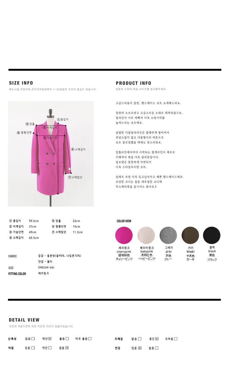 韩国服饰代购 bongjashop气质纯色长款呢大衣(4色)