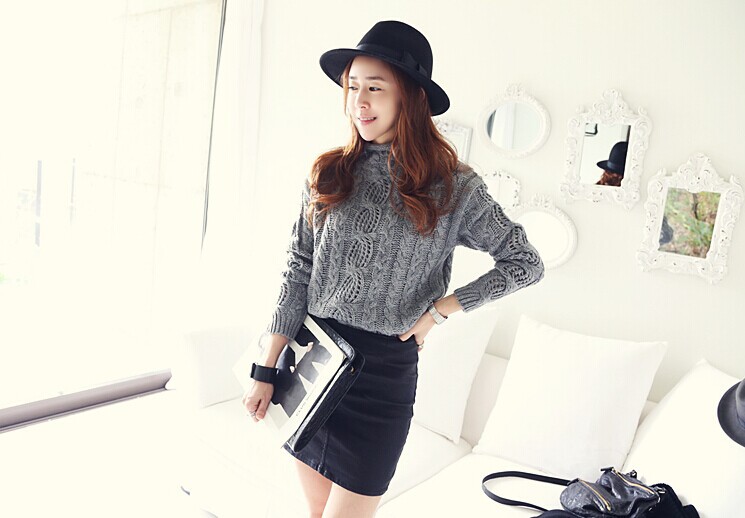 韩国代购 bongjashop气质麻花编织高领毛衣(4色)★现货★