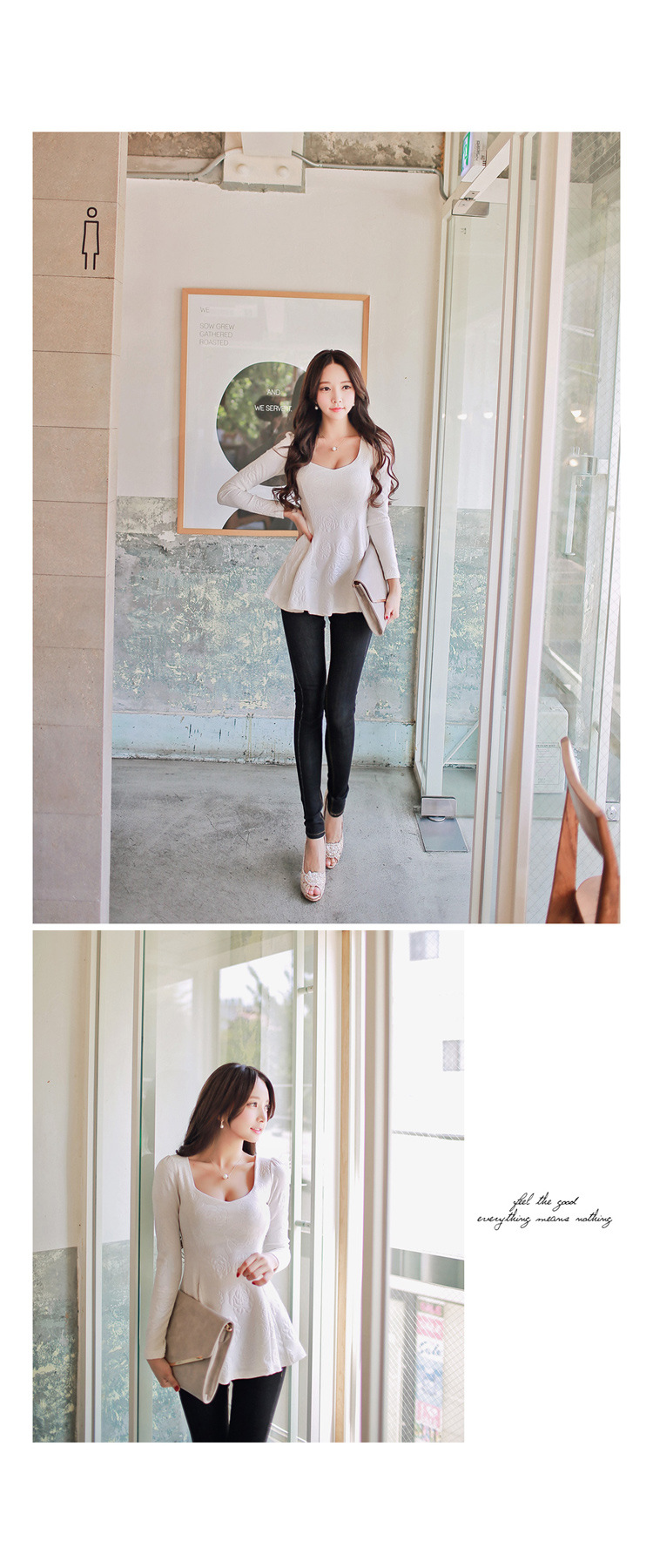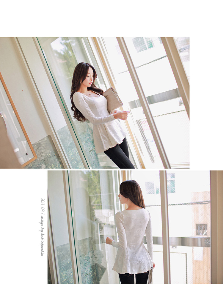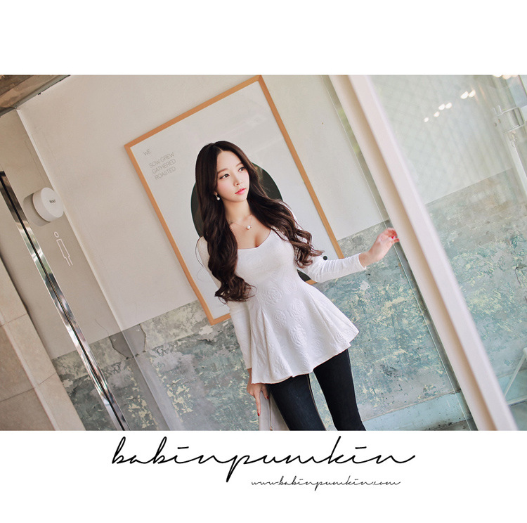 韩国女装代销 babinpumkin立体花朵收腰裙摆式上衣