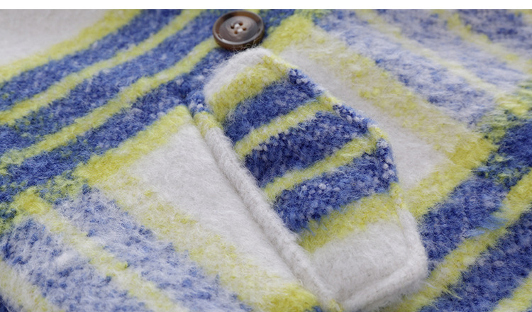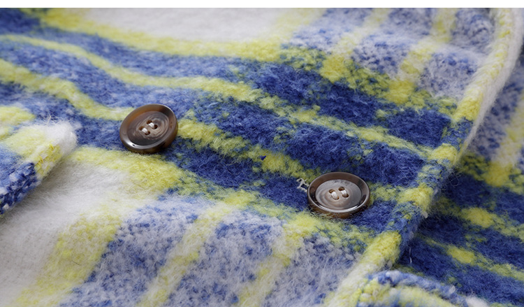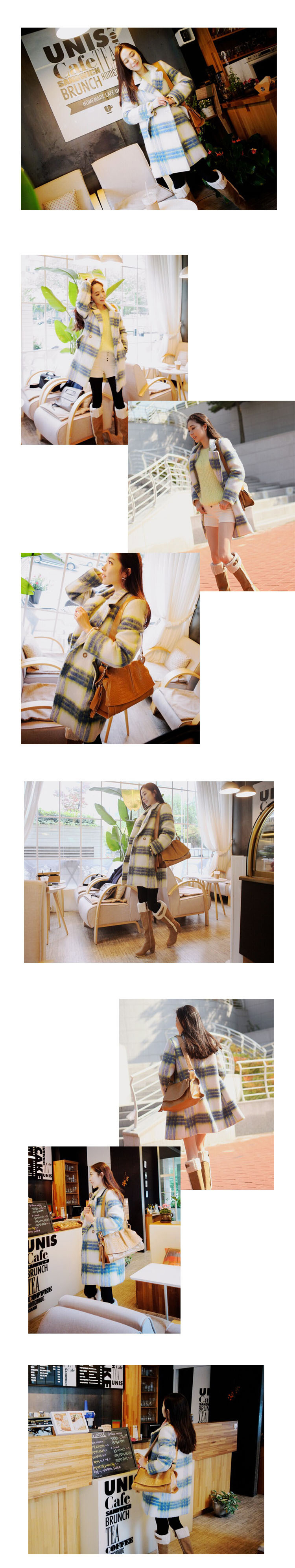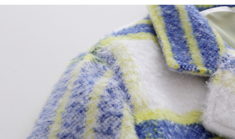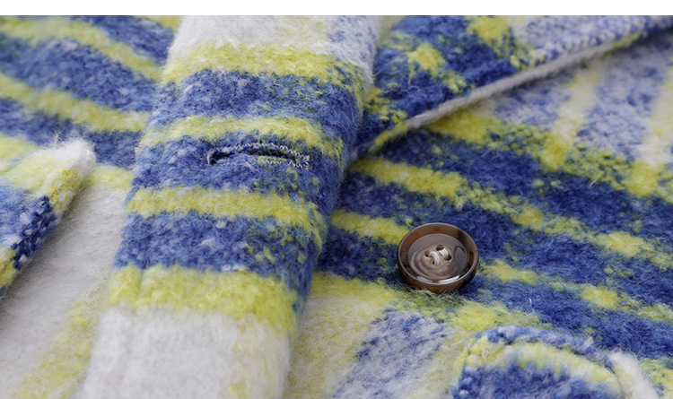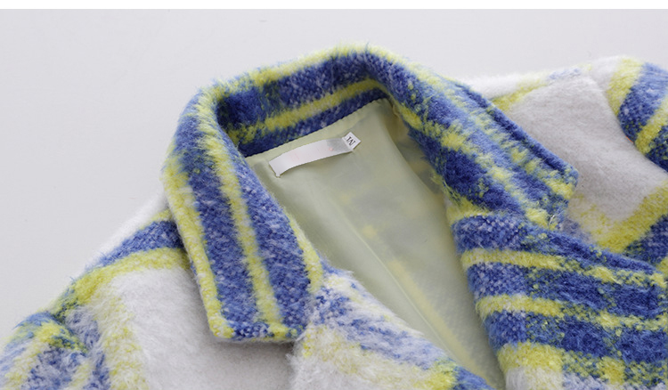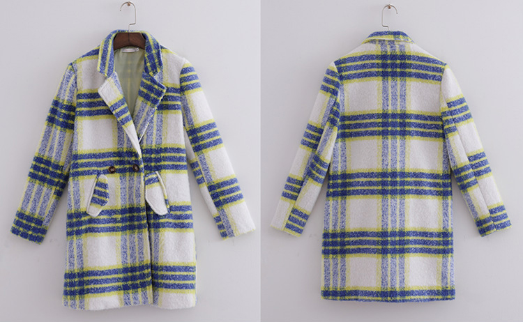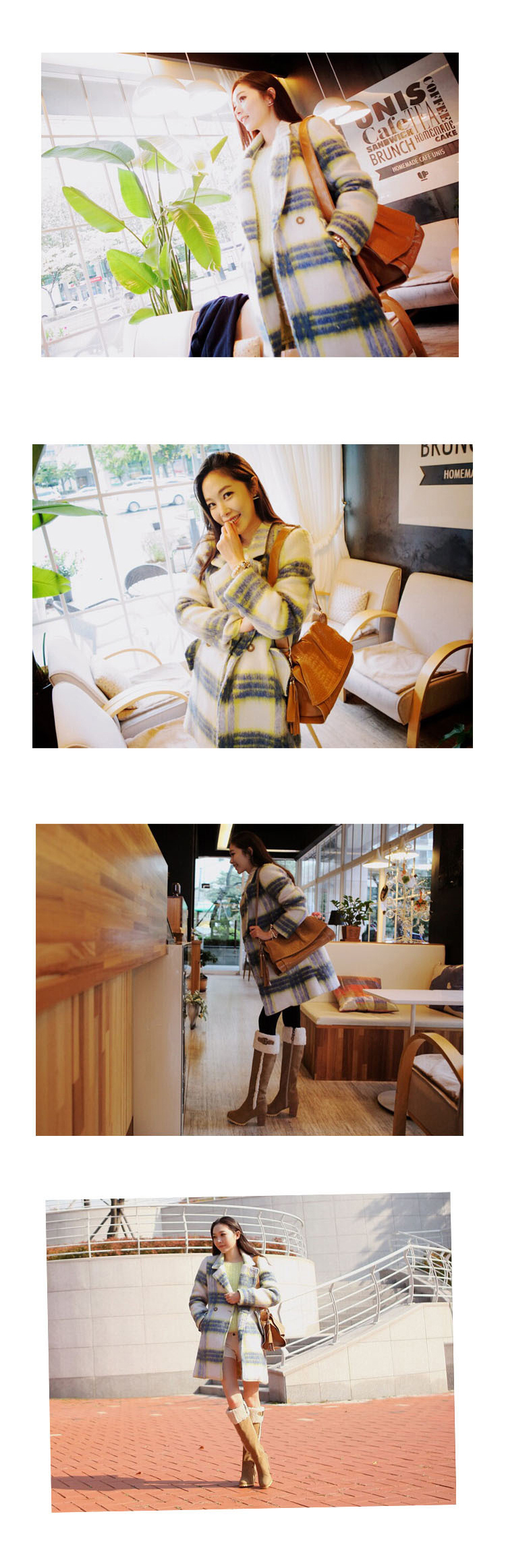 韩国女装批发 soo-a撞色格纹长款呢子大衣