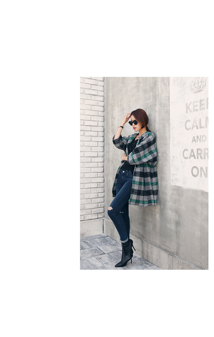 韩国服饰批发 dabagirl格纹长款呢子大衣【单件超重】