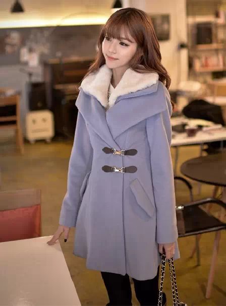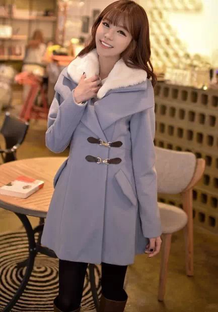 韩国服装网店代理 bongjashop毛领修身呢大衣【单件超重】