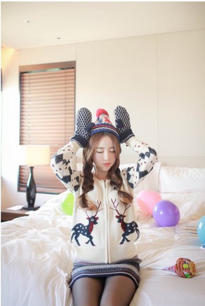 韩国服饰网 cherry-spoon圣诞风甜美可爱小鹿针织开衫