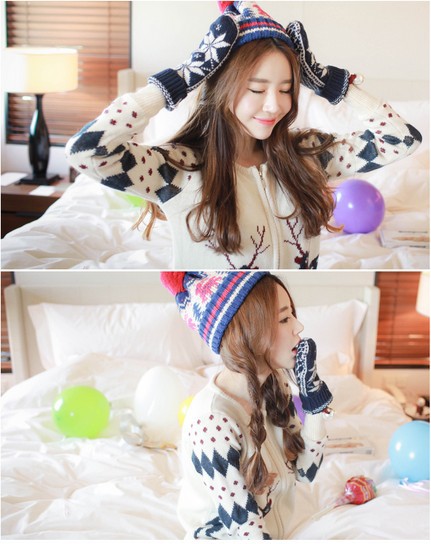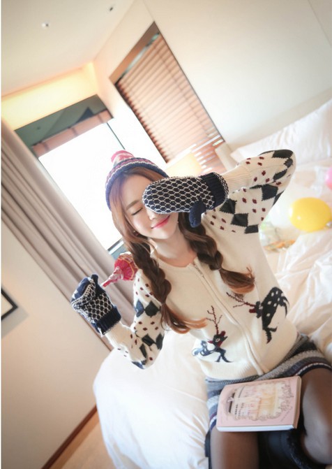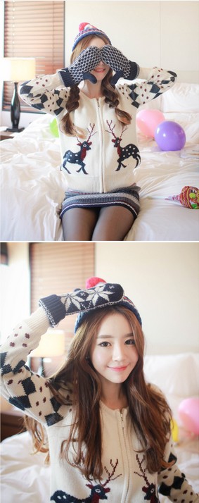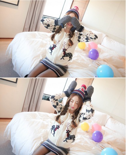 韩国女装新款 cherry-spoon圣诞风雪花半身包臀短裙