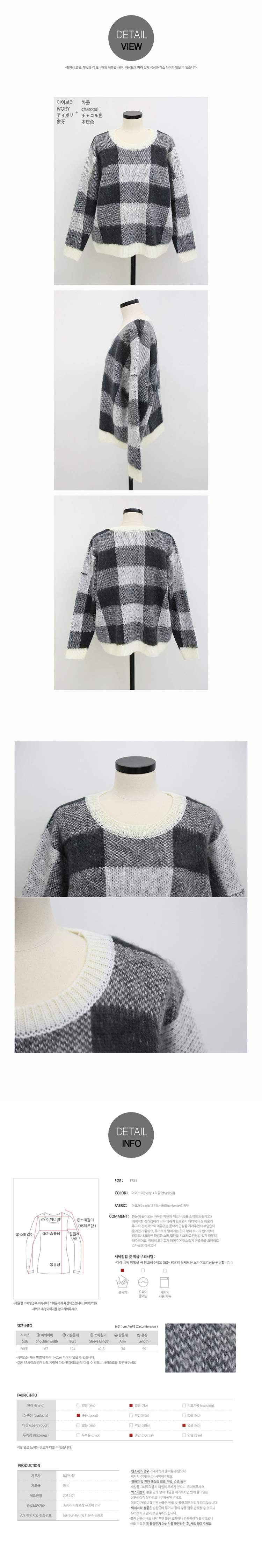 韩国女装正品代购 naning9街拍风大格纹针织衫